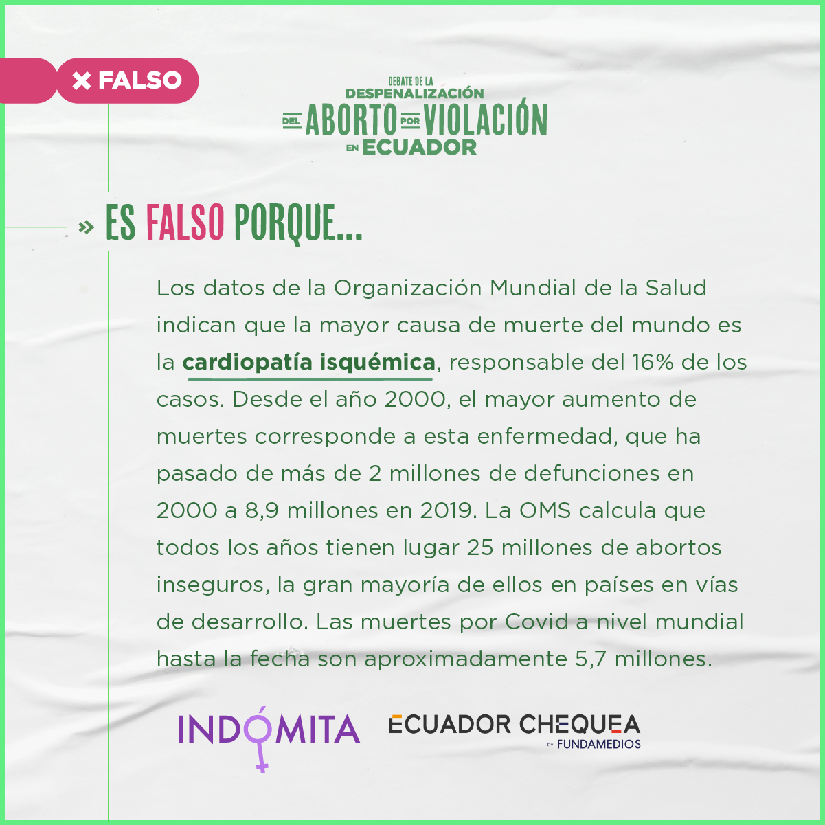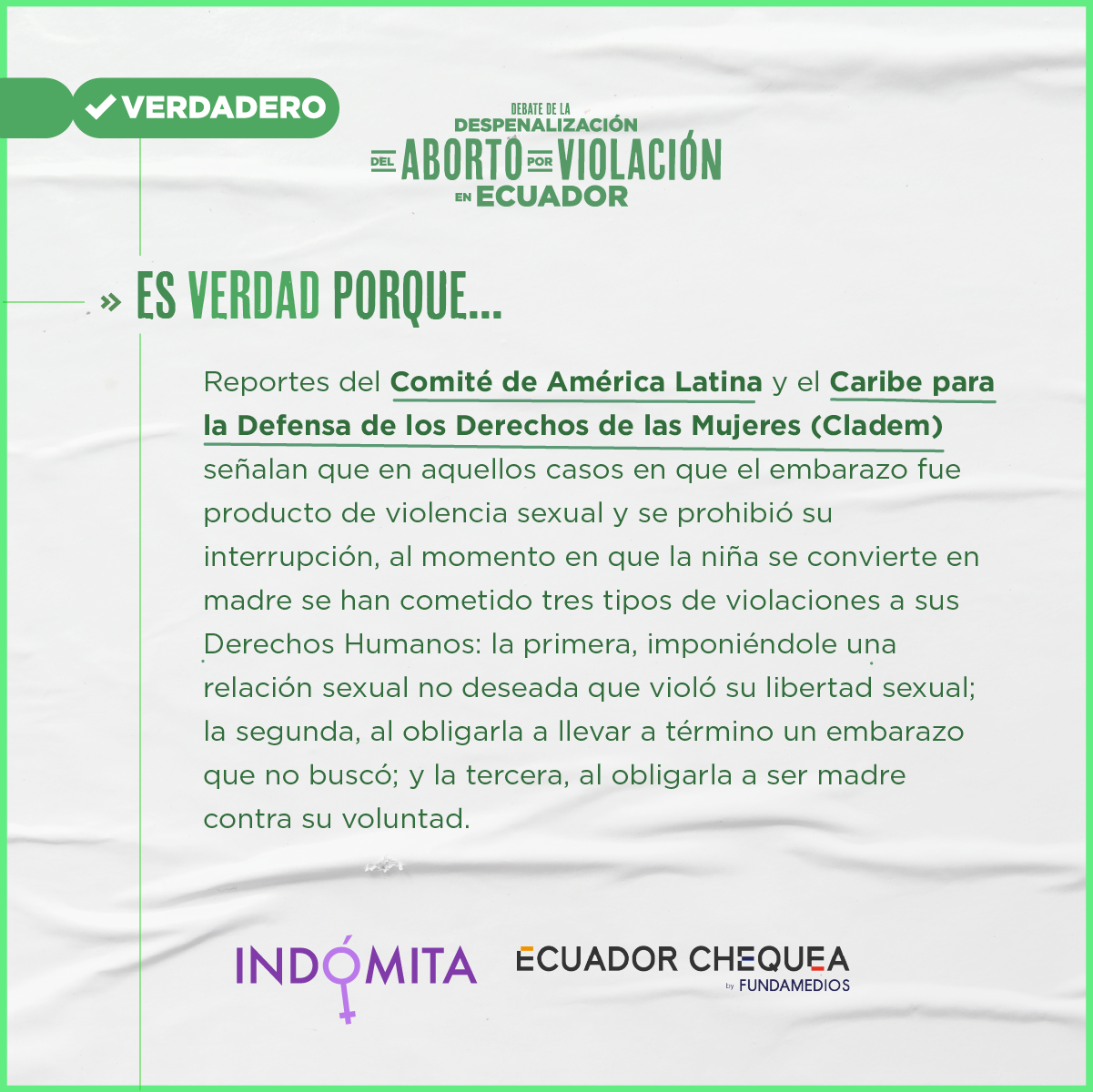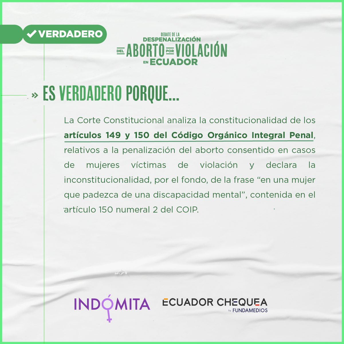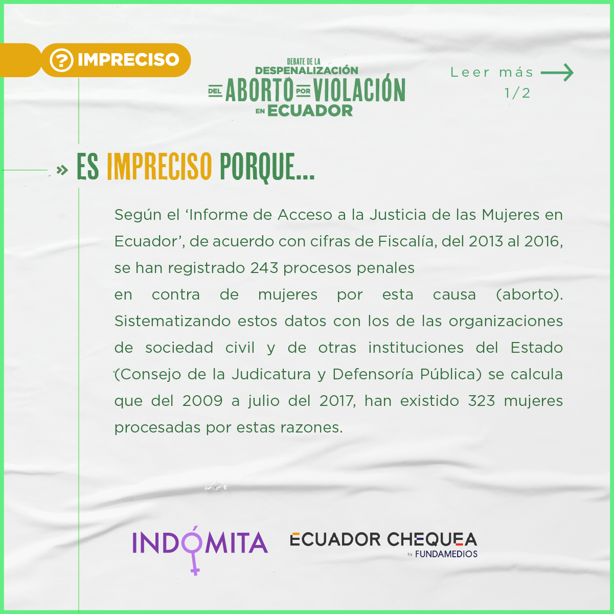 Durante esta continuación del segundo debate, Indómita y Ecuador Chequea realizaron el chequeo en vivo del discurso de los asambleístas. Este trabajo tuvo el respaldo de Cepam Guayaquil y los siguientes medios y coaliciones: Plan V, GK, La Barra Espaciadora, Chicas Poderosas Ecuador, Primicias, Wambra Radio, BN Periodismo, La Periódica, Tinta Digital, Ecuador Verifica, Ecuador Today y Edición 111.