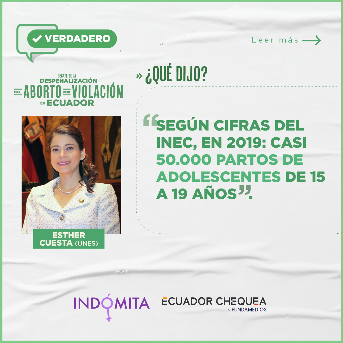 Esther Cuesta (UNES): “Según cifras del INEC, en 2019 hubo casi 50.000 partos de adolescentes de 15 a 19 años”.