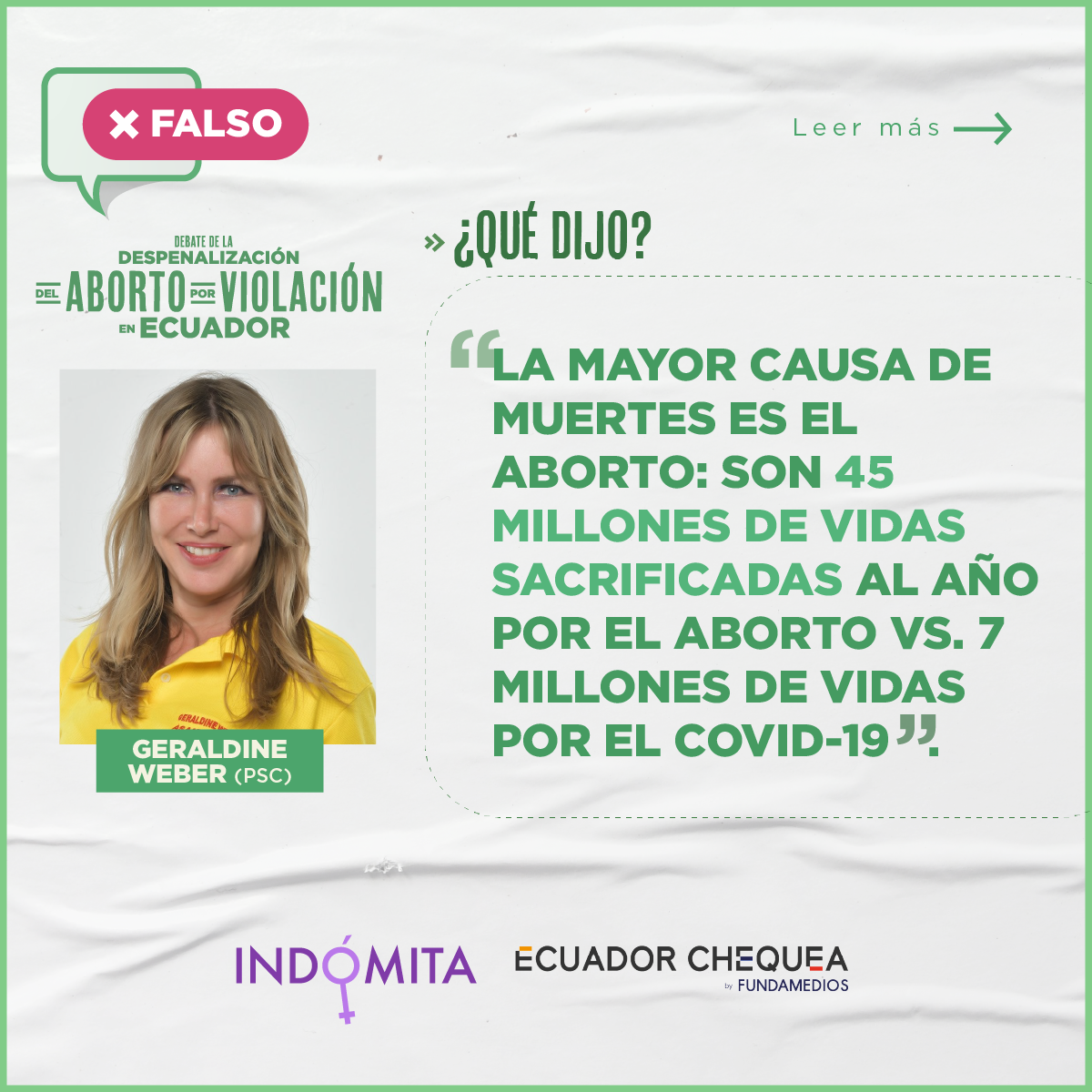 Geraldine Weber (PSC): “La mayor causa de muertes es el aborto: son 45 millones de vidas sacrificadas al año por el aborto vs. 7 millones de vidas por el Covid – 19”.